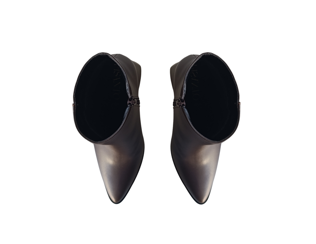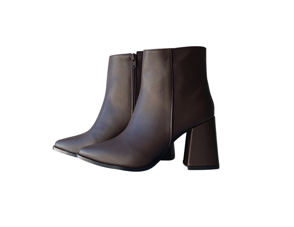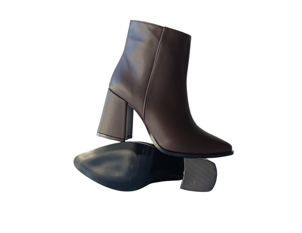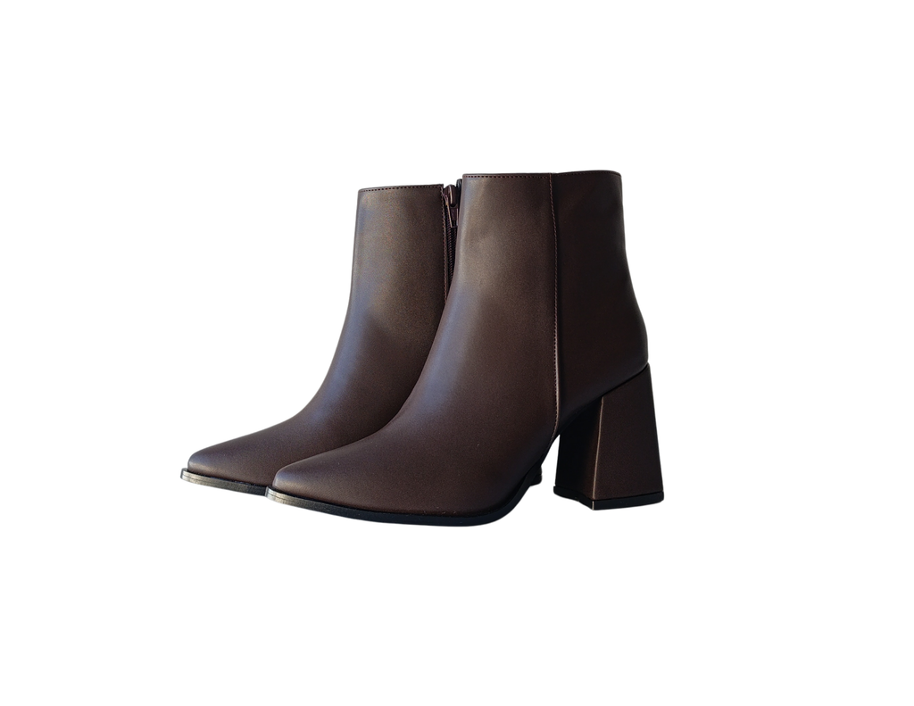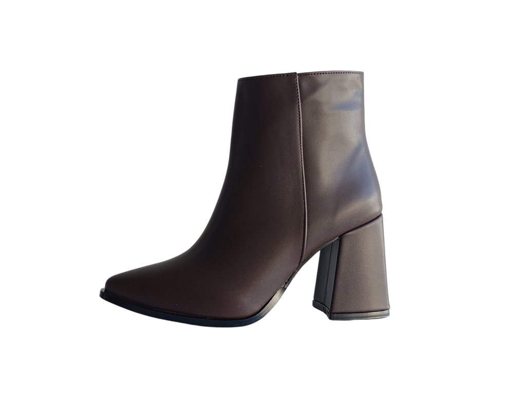 Botas marrón con textura picudas Pisanto de tacón de 8 cm de altura, perfectas para tus reuniones o eventos formales.