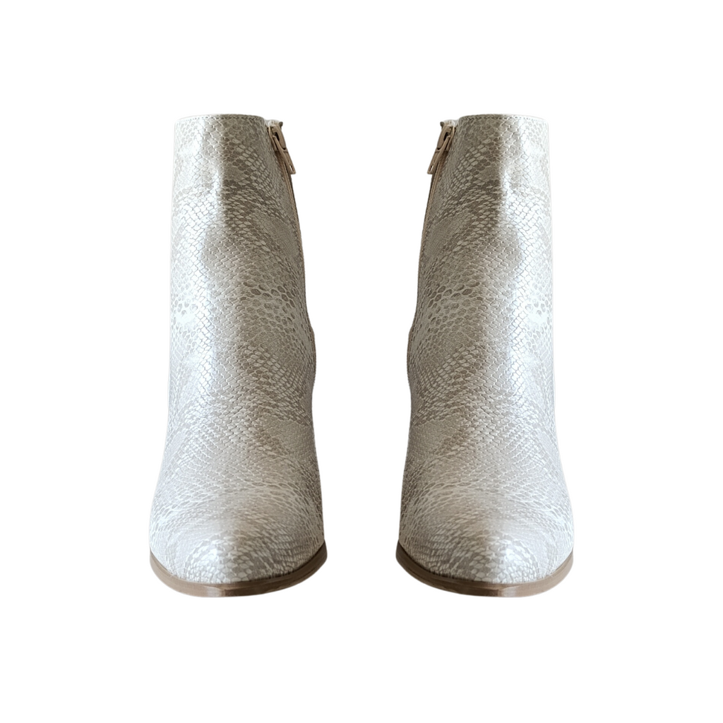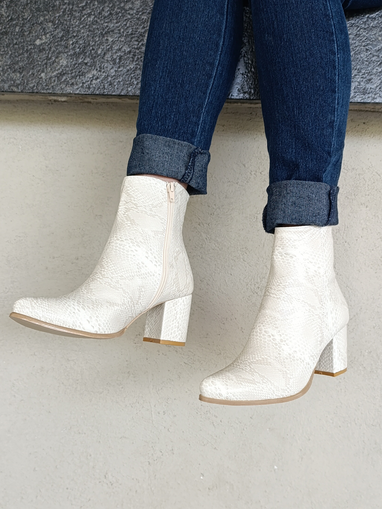 Los botines textura Cobra para mujer con tacón de la marca Pisanto son la elección perfecta para añadir un toque de elegancia y estilo a tu look diario. Confeccionados en piel sintética de alta calidad, estos botines cuentan con una punta ligeramente redondeada y un tacón de 7 cm que estiliza la figura de manera discreta y cómoda.