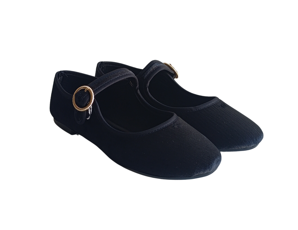 Merceditas Negro Estilo Mary Jane Terciopelo Mujer Pisanto