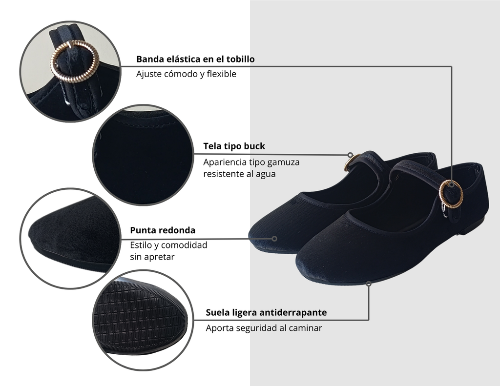 El modelo Mary Jane destaca por su versatilidad, permitiendo combinaciones con diferentes prendas, desde faldas hasta pantalones. La suela antideslizante proporciona seguridad, mientras que los materiales de alta calidad aseguran durabilidad y resistencia. Además, su diseño atemporal las convierte en un básico indispensable en el armario femenino.